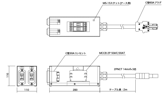 60P-30C1/2, 60P-30C2/2|C型60AコンセントからC型30Aプラグ付機器を接続する場合に使用